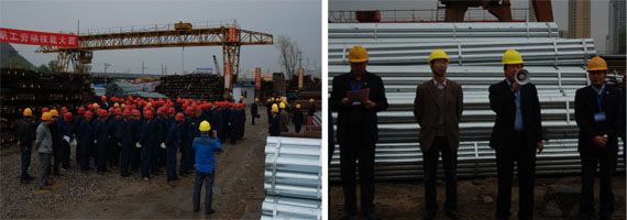 為落實集團總公司《2014年安全生產工作要點》,豐富物產配送公司基層班組建設,促進一線職工綜合技能水平提升,以《吊裝作業(yè)規(guī)范手勢》為標準,檢驗公司一線司吊作業(yè)人員執(zhí)行國家規(guī)范手勢、司吊作業(yè)操作規(guī)程的實際效果,保證全年安全控制目標的實現。物產配送公司在前期宣傳動員、學習培訓、實戰(zhàn)演練的基礎上,于2014年5月17日上午,舉行職工勞動技能比武大賽。集團總公司黨委書記白家林、集團黨群工作部部長趙宗青、安全環(huán)保部干事劉軍蒞臨現場指導。