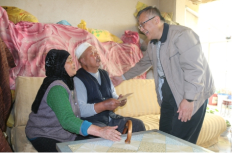 王玉輝書記一行在大通縣石山鄉(xiāng)黨委副書記胡懷強、集團派駐第一書記張秉瑜的陪同下,首先來到兩戶重點幫扶對象的家中進行幫扶慰問。貧困戶馬得倉患慢性腎炎和高血壓,其妻馬尕奴子患多種慢性病,年老體衰,沒有勞動能力,生活十分困難。貧困戶宗統(tǒng)林患嚴重腰間盤突出疾病,兒子白血病去世,給貧困的家庭背負著20萬左右的債務(wù)。王玉輝書記對這兩戶因病致困特困戶的生活情況非常關(guān)注,詳細地詢問了他們的家庭基本情況和面臨的困難,了解了集團駐村扶貧工作干部開展扶貧工作的情況。親切的話語貼近了與貧困群眾的心,貧困戶們握著他的手嘮著家常,愉快地說起了現(xiàn)在的生產(chǎn)生活情況和對未來生產(chǎn)生活的想法憧憬,所到之處時時傳來歡聲笑語。
