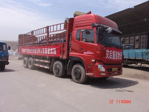 6月12日上午,由青海朝陽(yáng)物流公司組織的首批五十輛裝滿災(zāi)后重建物資的重卡在省運(yùn)管局趙局長(zhǎng)的一聲號(hào)令下從朝陽(yáng)物流市場(chǎng)駛出,直奔玉樹災(zāi)區(qū),為災(zāi)后重建貢獻(xiàn)力量。