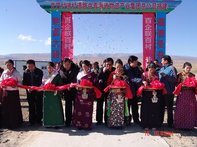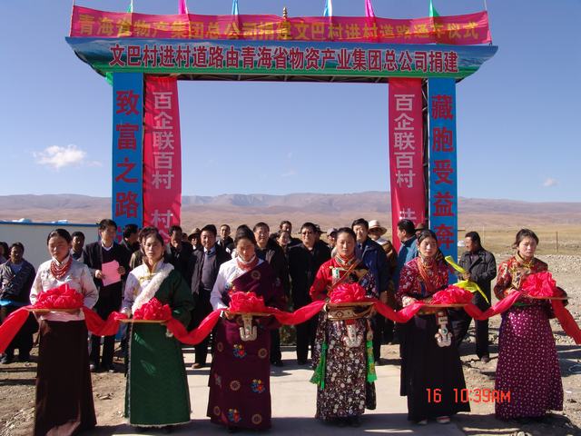 交接儀式上,集團公司總經(jīng)理王玉輝、共和縣人大常委會主任尕瑪才讓為元者村黨員活動室、科普文化室、醫(yī)療衛(wèi)生室揭牌之后,與黨委書記白家林、紀委書記王仁芬、共和縣委常委、組織部長官卻南見等領(lǐng)導為共和縣黑馬河鄉(xiāng)文巴村進村道路通車剪彩。集團公司黨委書記白家林代表省物產(chǎn)集團向共和縣江西溝鄉(xiāng)提前捐送元者村游牧民定居點工程配套資金100,000元。集團公司紀委書記王仁芬、共和縣委常委、組織部長官卻南見、江西溝鄉(xiāng)元者村村長、文巴村村長分別代表捐建方、受捐方致辭發(fā)言。至此,青海物產(chǎn)集團在"百企聯(lián)百村"活動中擬投入的1,455,500元,已到位1,255,500元。剩余的200,000元游牧民定居點工程建設項目捐款將根據(jù)工程進度分期轉(zhuǎn)付。