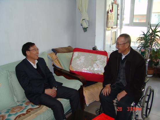 2013年1月28日,春節(jié)來臨之際,省委組織部王志明副部長(zhǎng)在省國(guó)資委黨委副書記毛占彪、物產(chǎn)集團(tuán)領(lǐng)導(dǎo)白家林、王仁芬的陪同下,走訪慰問了集團(tuán)系統(tǒng)生活困難老黨員肖振東。王志明副部長(zhǎng)親切地詢問肖振東的身體狀況、生活和家庭情況,發(fā)放了慰問金和慰問品,并希望他保重身體,愉快安度晚年。老黨員肖振東激動(dòng)地表示感謝黨組織的關(guān)懷,感謝上級(jí)領(lǐng)導(dǎo)的關(guān)心!